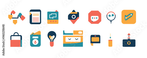 Colorful app icons collection featuring technology, communication, and creativity symbols.