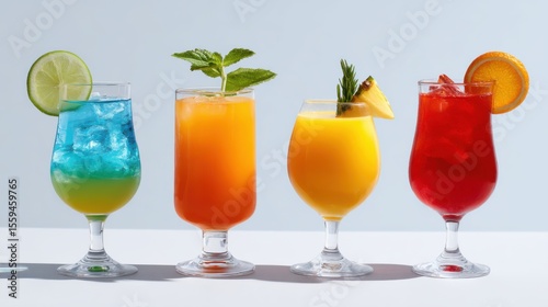 Colorful Assortment of Refreshing Summer Cocktails on a Table