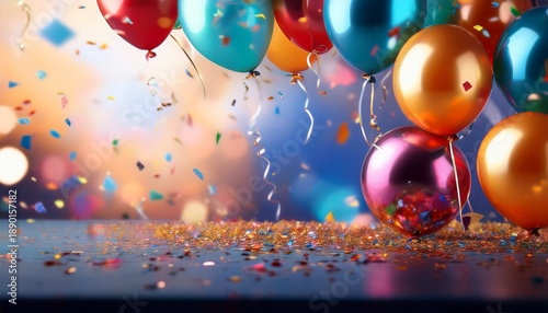 Colorful Balloons And Confetti Celebration Background Hd