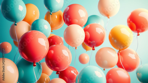 Colorful Balloons in Dynamic Arrangement, Symbolizing Joy and Creativity