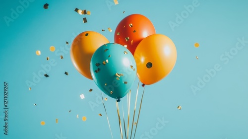 Colorful balloons with confetti, festive celebration backdrop, vibrant party decor, cheerful event background