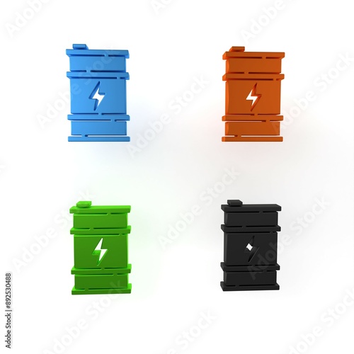 Colorful Bio fuel barrel icon isolated on white background. Eco bio and canister. Green environment and recycle. Minimalism concept. 3D render illustration