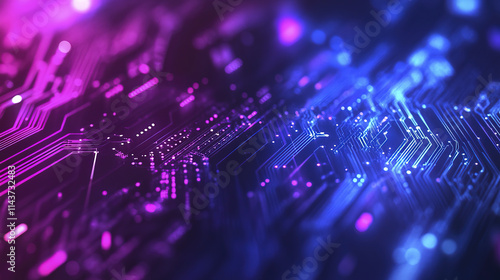 Colorful blue and purple technology background with circuits and lights