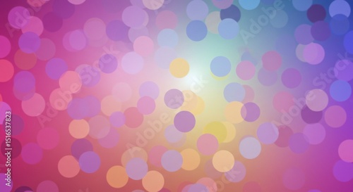 Colorful bokeh circles drift across a vibrant gradient of pink, purple, and blue hues. Soft and dreamy