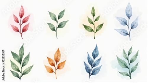 Colorful Botanical Illustration of Various Leaves in Autumn and Spring Colors