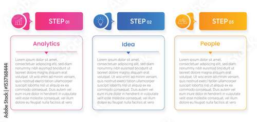 Colorful Business infographic template. 3 Step timeline journey. Process diagram, 3 options on white background, Infographics elements vector illustration.
