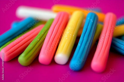 Colorful candy sticks, vibrant hues, close-up shot on pink background, sweet treats, sugary delights, confectionery.