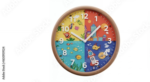 Colorful cartoon wall clock with diverse images