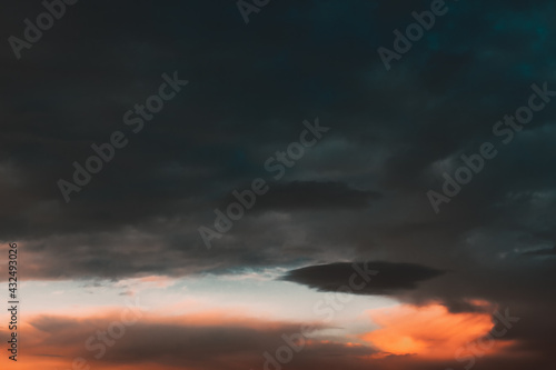 Colorful clouds on twilight . Black thunderclouds at sunset