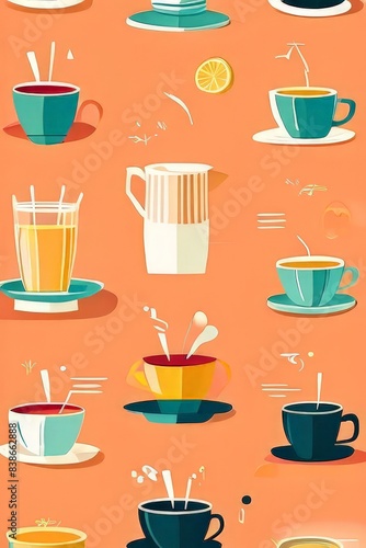 Colorful Collection of Cups and Saucers