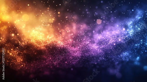 Colorful cosmic dust particles swirl, dark background, abstract design
