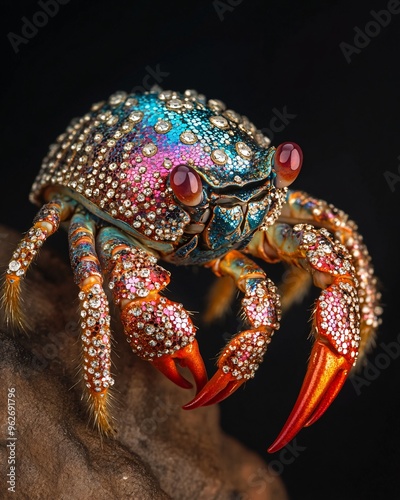 Colorful Crab with Sparkling Shell and Red Claws