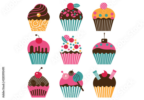 Colorful Cupcake Vector Illustrations Sweet Treats Desserts