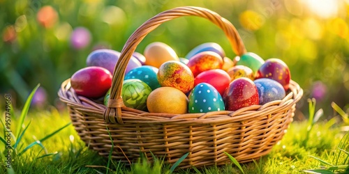 Colorful easter eggs in a basket, basket full of easter eggs, easter, holiday, decoration, traditional, vibrant