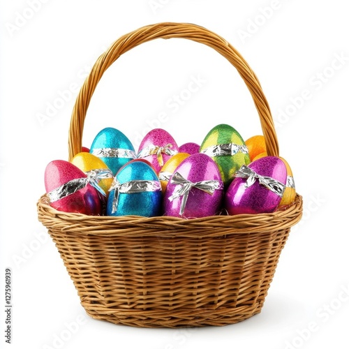 Colorful Easter Eggs in Wicker Basket Spring Festive Decor