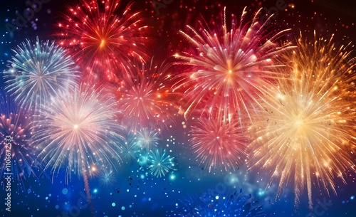 colorful fireworks vector on dark blue background with sparking bokeh