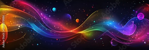 Colorful galaxy showcasing swirling nebula and glowing planets in endless expanse of space. Generative AI