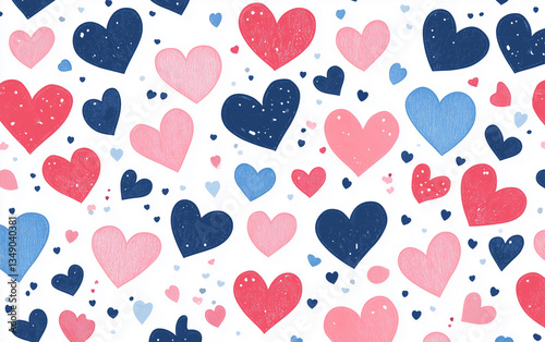 Colorful Hearts Pattern: Pink, Red, Blue Valentine's Day Background on White