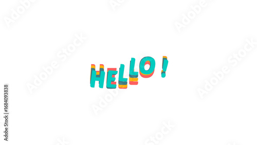 Colorful Hello text image with 3D effect and wavy style. Graphic design element for overlay. This is a still image with a transparent background for easy integration. Alpha channel.