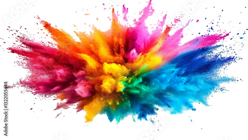 Colorful holi powder on white background. Colorful vibrant rainbow holi paint color powder explosion with bright colors isolated white background.