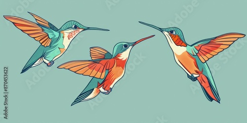 Colorful Hummingbirds in Flight Illustration