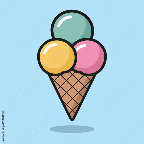Colorful Ice Cream Cone – Cute Summer Dessert Vector Illustration