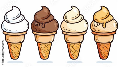 Colorful ice cream cones in a variety of flavors, fun and inviting, perfect for summer treats and dessert lovers.