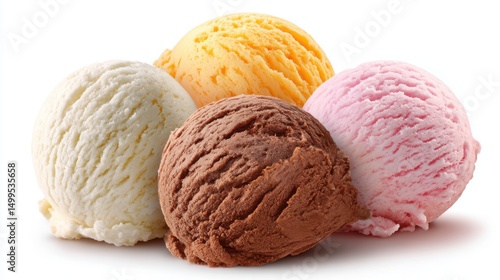 Colorful Ice Cream Scoops Close Up Studio Shot Assortment of Flavors Vanilla Chocolate Strawberry Mango on White Background