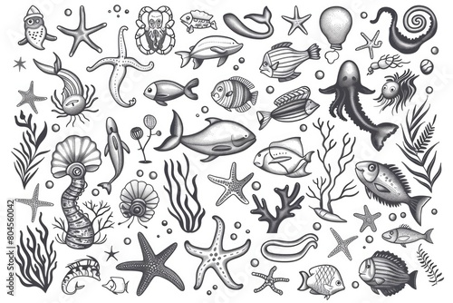 Colorful illustration of various sea creatures. Perfect for educational materials