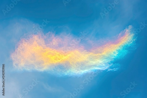 Colorful Iridescent Cloudscape Against a Vibrant Blue Sky