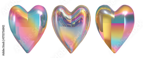 Colorful Iridescent Hearts on Transparent Background for Creative Projects