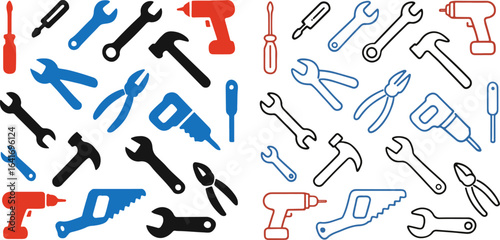 Colorful Labor Tool Pattern Seamless Repeat-Vector