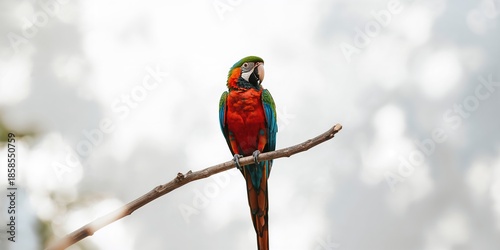 Colorful macaw bird sitting on a branch, highlighting bright feathers, avian species, wildlife photography
