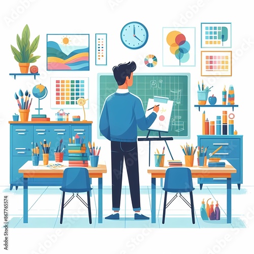 Colorful modern classroom vector illustration isolated on white background