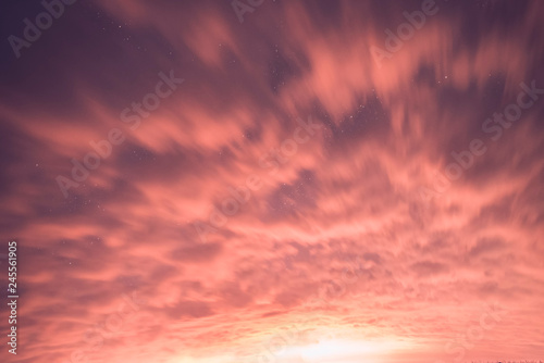 Colorful orange clouds on the sky.
