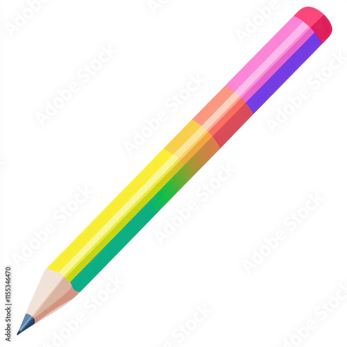 Colorful pencil with bright stripes on a white background, perfect for art projects, school supplies, children’s creativity, and drawing activities