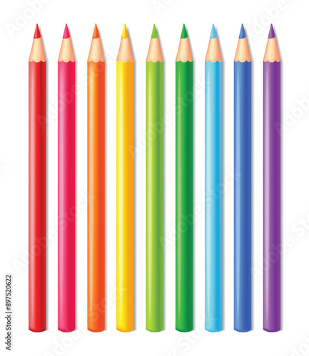 Colorful pencils isolated set, white background. Vector. Colorful school supplies, vector illustration. Stationery