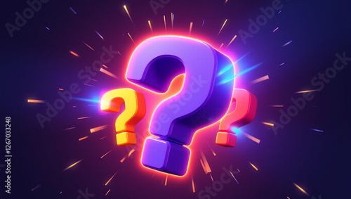 Colorful pop-up quiz game 3D Question Marks, ? with Neon Light and riddle