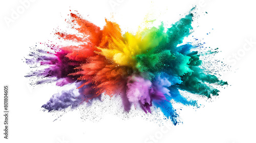 Colorful rainbow powder explosion on a transparent background. Generative AI