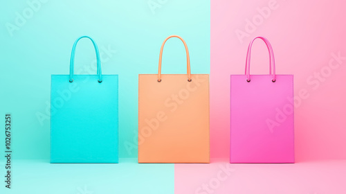 colorful shopping bags on pastel background for retail and fashion marketing