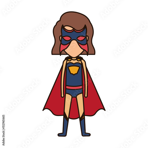 colorful silhouette with faceless standing girl superhero with short hair and closed eyes vector illustration
