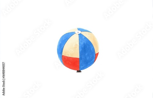 Colorful sphere, possibly a ball, with segments of cream, red, and blue