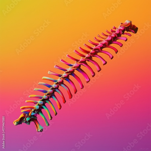 Colorful spine model showcasing vertebrae with a vibrant gradient background.