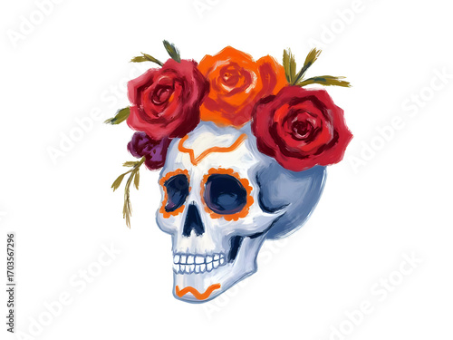Colorful Sugar Skull Calavera Illustration