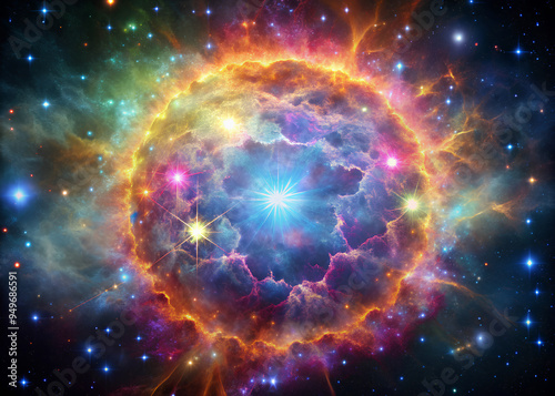 Colorful supernova background, nebula and galaxy