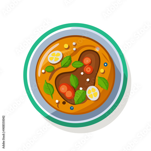 Colorful Tom Yum Soup Illustration on Black Background