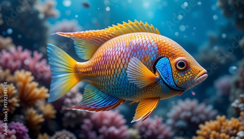 Colorful Tropical Fish Swimming Near Coral Reef in a Clear Ocean