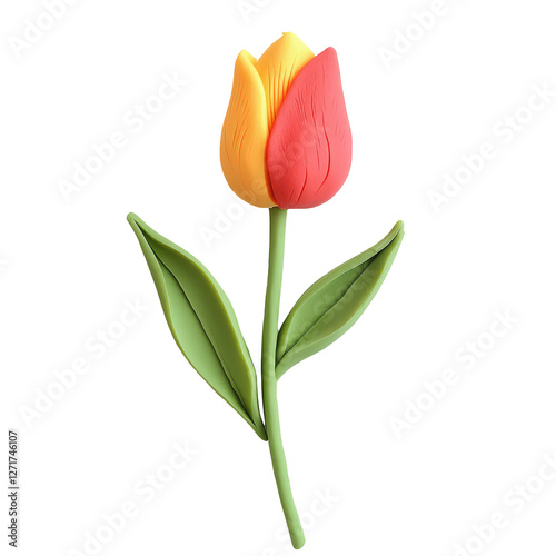 Colorful Tulip Crafted from Playdough on Solid Transparent background for Creative and Educational Purposes