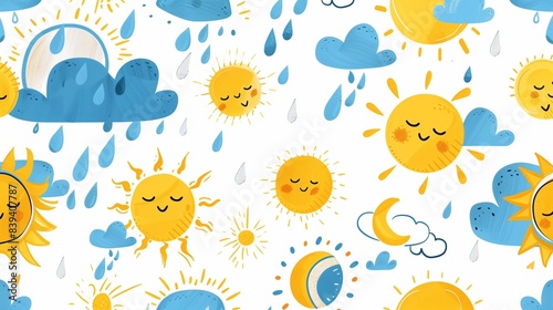 Colorful Weather Doodle Icons in Yellow and Blue