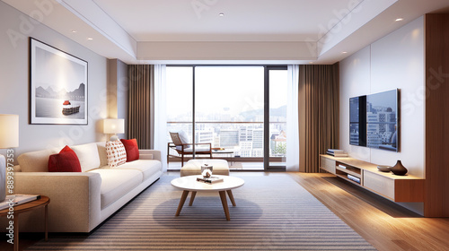 Comfortable hotel room with red interior ornament for elegant impression